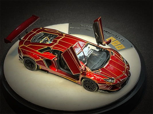 PGM 1/64 Red Burst Crack Lamborghini LP700 Diecast Fully Open Model Car