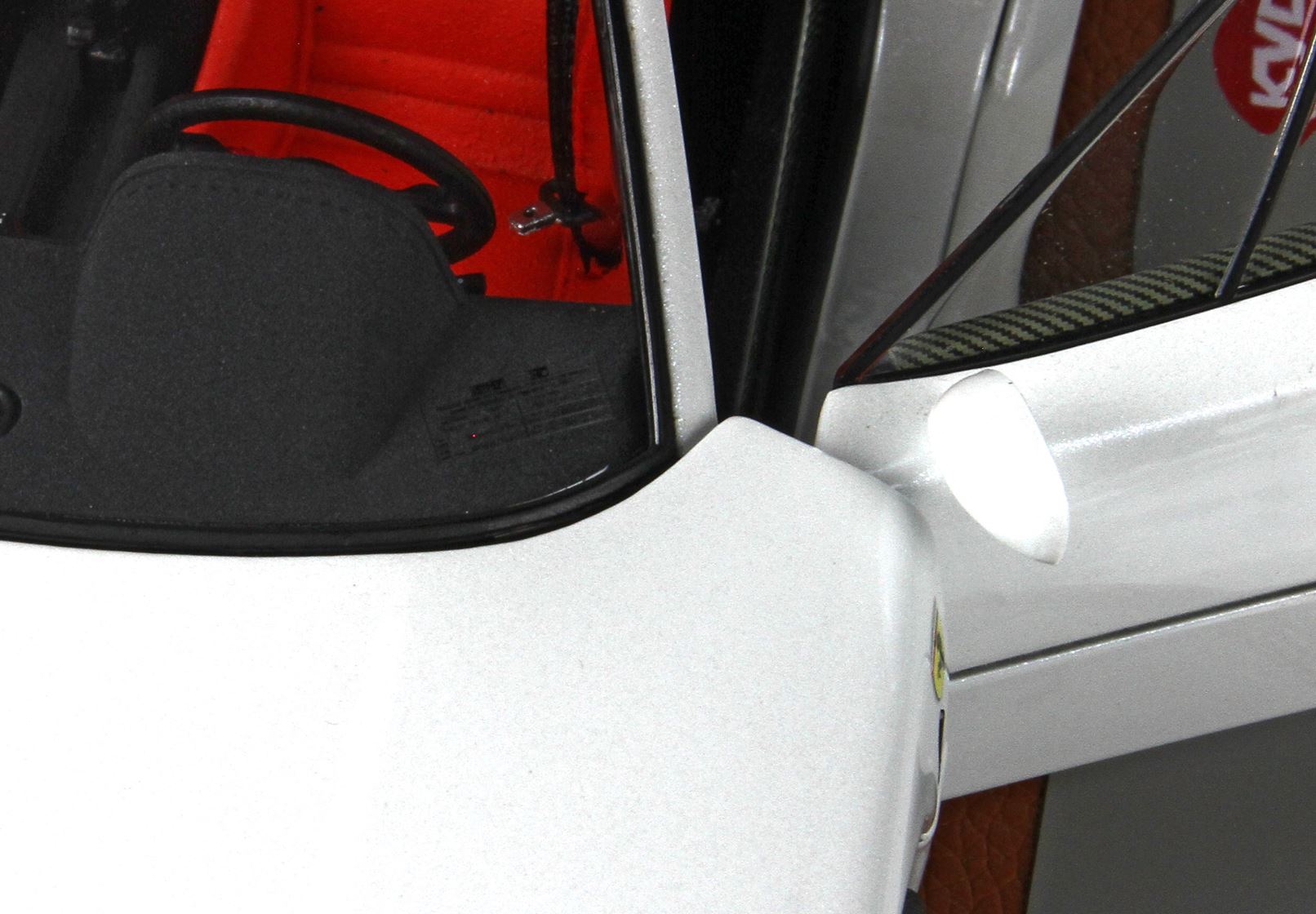 The suspension works flawlessly, the headlights open like those of the real car, and the interior has been completely revamped, with a faithful reproduction of Kevlar and a dashboard that reflects the effect of alcantara. Each model is produced in a limited and numbered edition, with only 78 available. This model was entirely produced by Kyosho, under sub-license from BBR.