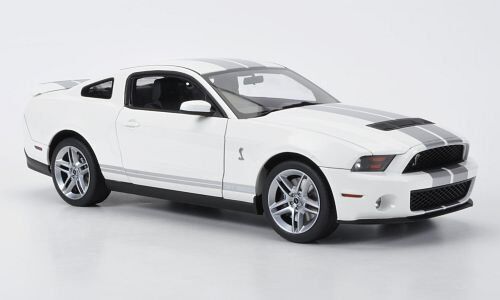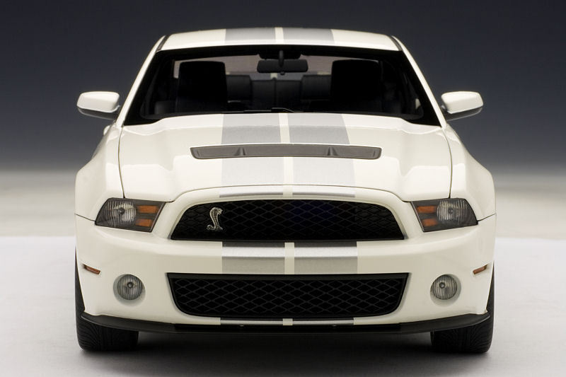2010 FORD MUSTANG SHELBY GT500 COBRA WHITE SILVER STRIPES 1:18 by AUTOart 72917