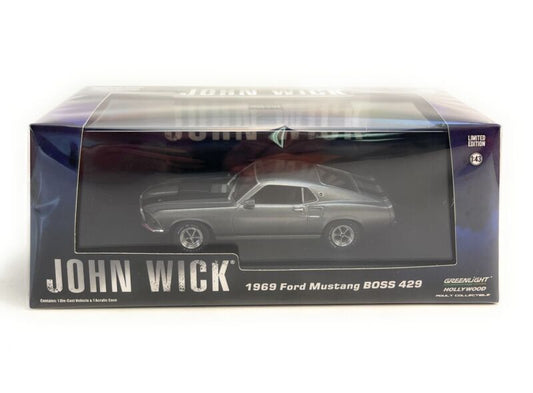 GREENLIGHT 1:43 1969 GRAY FORD MUSTANG BOSS 429 "JOHN WICK" W/CASE MODEL 86540