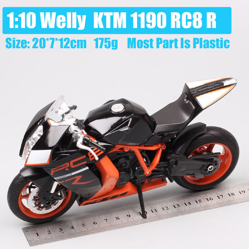 1/10 Welly Big KTM 1190 RC8 R Sport Bike Plastic Toy Vehicle Motorcycle