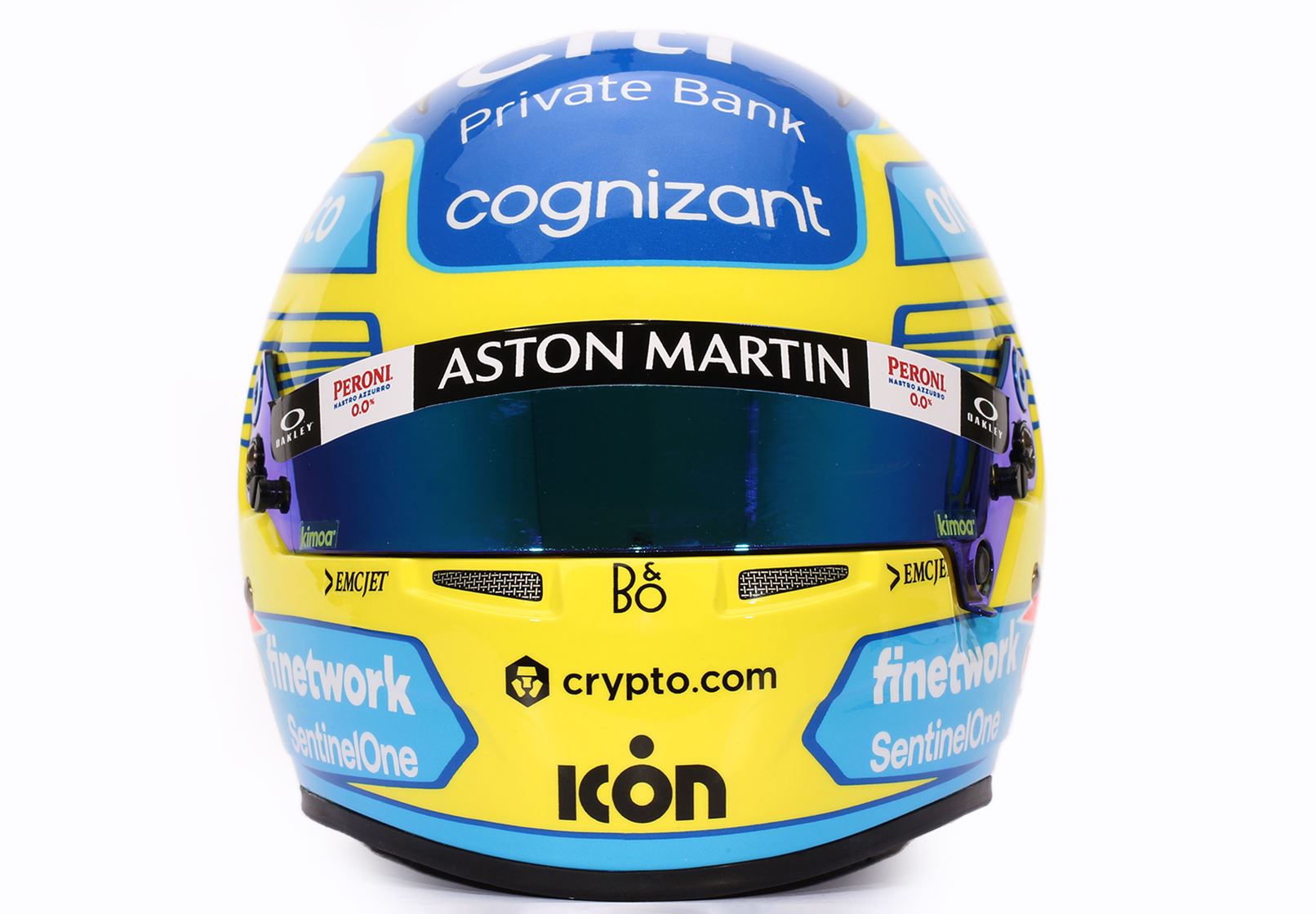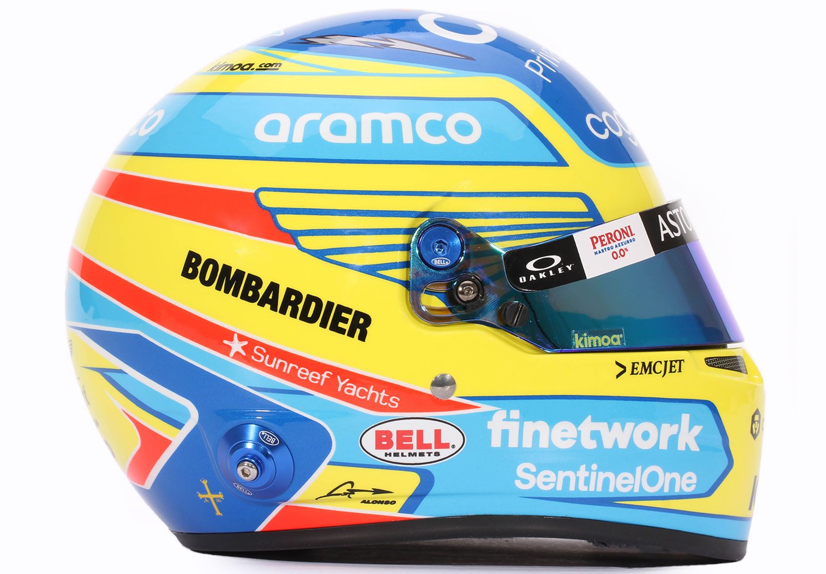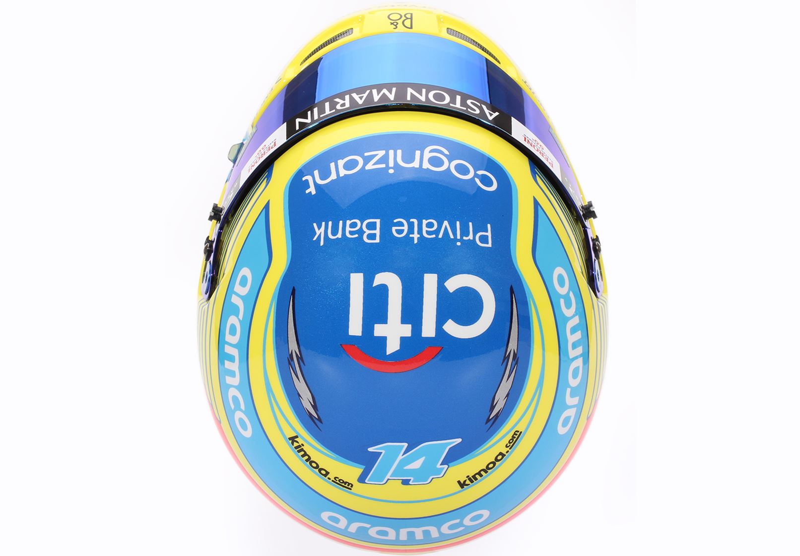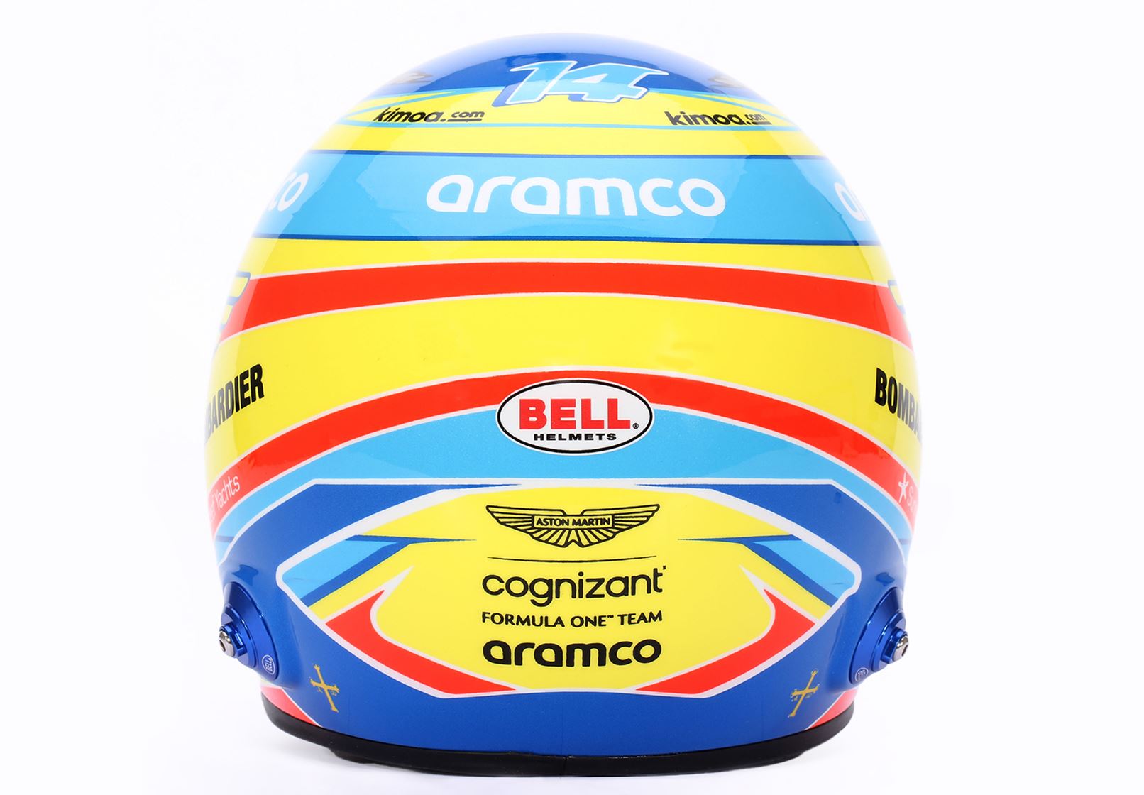 This Bell Mini Helmet Scale 1/2 is an exact replica of the HP77 featuring the design used by Fernando Alonso in the 2023 Formula 1 season.