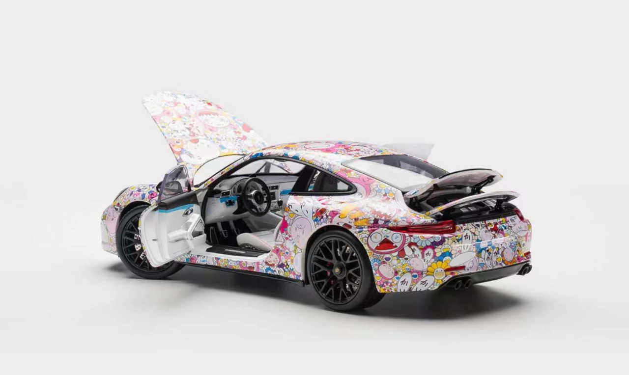 1/18 NSL Porsche 911 Carrera Kaikai Kiki Takashi Murakami Cartoon Edition Diecast Car Model