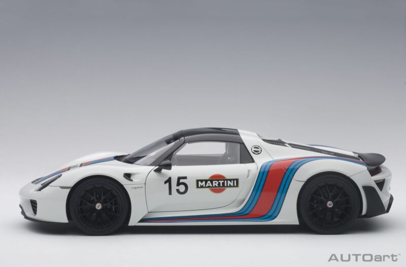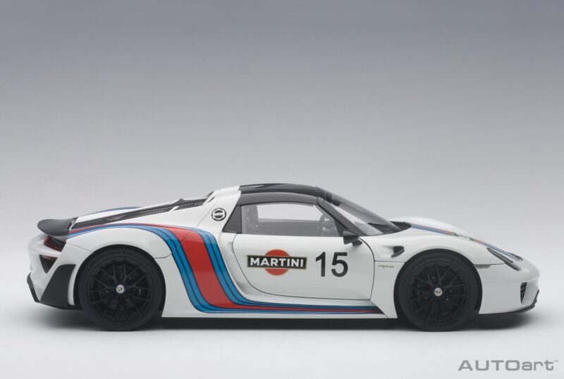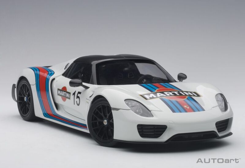 AutoArt 1:18 Porsche 918 Spyder Weissach Package White/Martini Livery Model Car